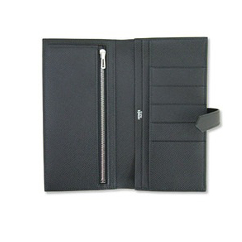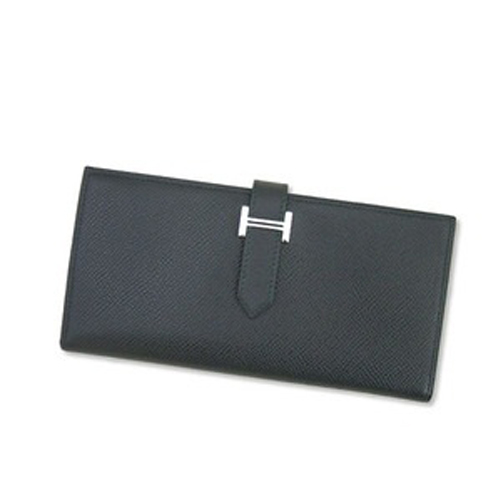 シンプルでエレガントなエルメスの定番長財布、ベアン。細かな型押素材で光沢の少しあるブラックカラーは定番人気です。