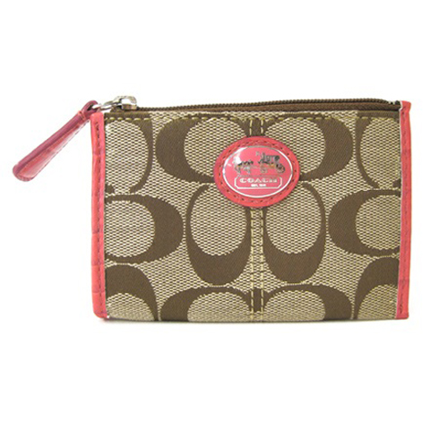 全体的のカーキ色にローズカラーがアクセントなオシャレなコインケース。カバンの中で探しがちなコインケースですが、キーリング付なので内部ファスナーなどに取り付けて頂くと探しやすく大変便利です。