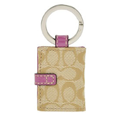 全体的のカーキ色にローズカラーがアクセントのオシャレなキーリング。お気にいりの写真を入れて持ち歩けるマルチケースになっています。プレゼントにもオススメです。