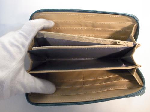 落ち着いた中にも個性のあるモスグリーン色のラウンドファスナー長財布です。小銭・お札はもちろん、カードもたっぷり収納できます。
