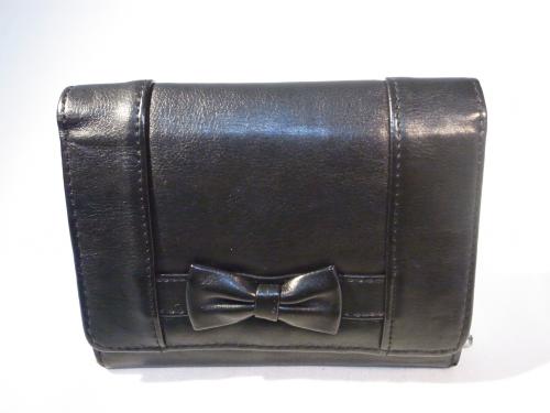 クールでかっこいいブラックの中に、リボンがアクセント!甘辛MIXな二つ折り財布です。かわいいだけじゃなく、収納力も抜群です。