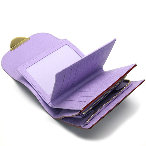 人気のマルチカラーラインです。内側のパープル、フロントのバックルがアクセントになっているとてもデザイニングでお洒落なお財布です。