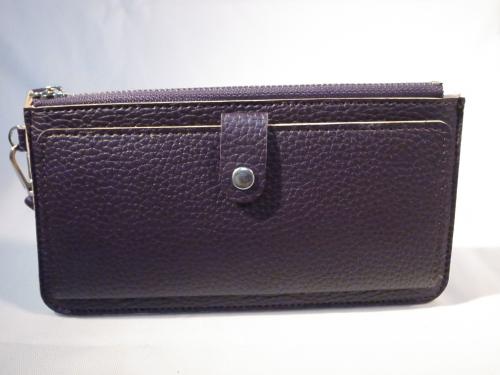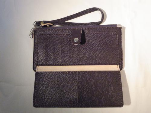 シックで落ち着いた、ダークブラウン色のストラップ付き長財布です。カードもたっぷりはいります。