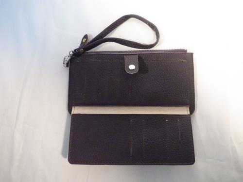 シックで落ち着いた、ダークブラウン色のストラップ付き長財布です。カードもたっぷりはいります。
