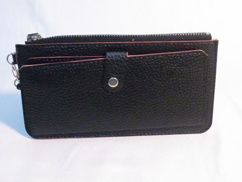 汚れも目立たず飽きもこない、定番人気色ブラック色のストラップ付き長財布です。カードもたっぷりはいります。