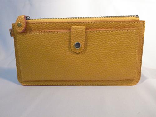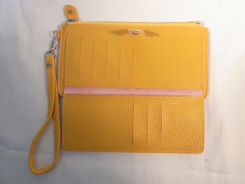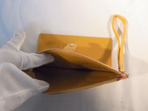 持っているだけで気持ちも明るくなるような、ポップで元気なイエローのストラップ付き長財布です。カードもたっぷりはいります。