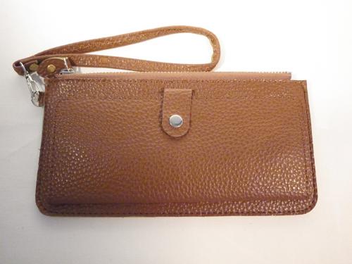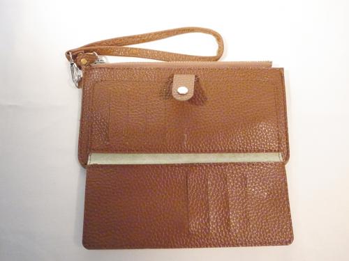 男女問わず人気カラー、キャメル色のストラップ付き長財布です。カードもたっぷりはいります。