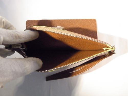 オシャレで品のあるキャメル色のストラップ付き長財布です。カードもたっぷりはいります。