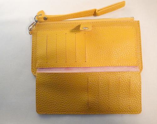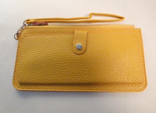 持っているだけで気持ちも明るくなるような、ポップで元気なイエローのストラップ付き長財布です。カードもたっぷりはいります。