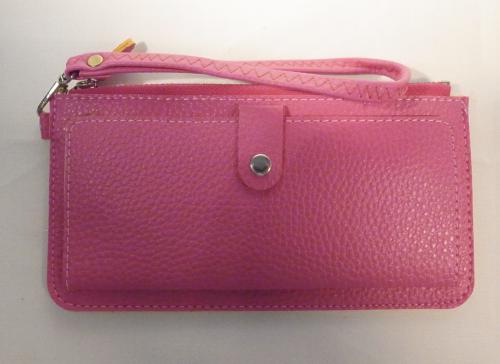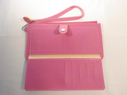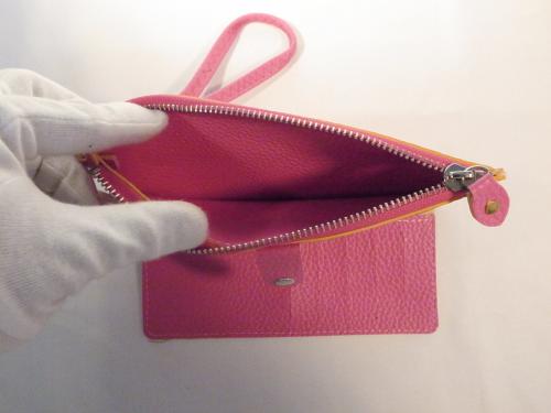 キュートなピンク色のストラップ付き長財布です。カードもたっぷりはいります。