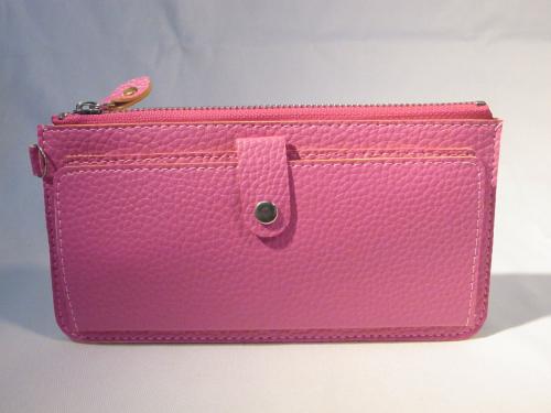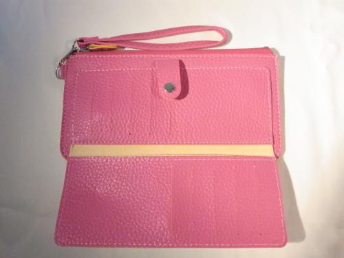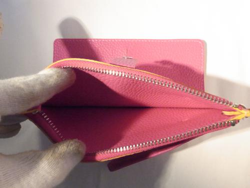 キュートなピンク色のストラップ付き長財布です。カードもたっぷりはいります。