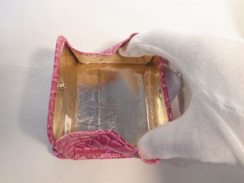 キュートなピンク色でも高級感を感じる、クロコダイル風コインケースです。まちが広いので、小銭がとても探しやすく便利です。