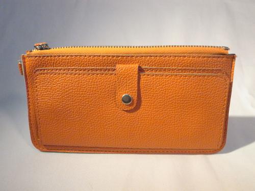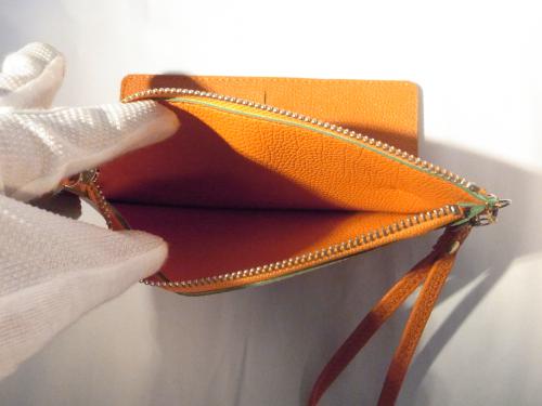 金運から人間関係まで、風水でも人気カラーのオレンジ色のストラップ付き長財布です。カードもたっぷりはいります。