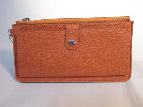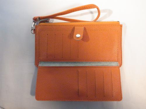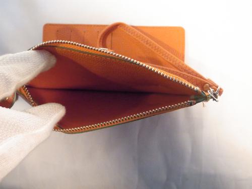 金運から人間関係まで、風水でも人気カラーのオレンジ色のストラップ付き長財布です。カードもたっぷりはいります。