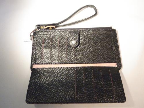 汚れも目立たず飽きもこない、定番人気色ブラック色のストラップ付き長財布です。カードもたっぷりはいります。