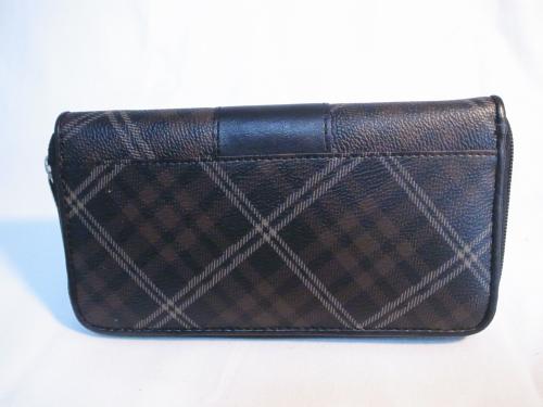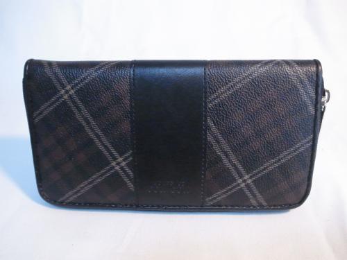 落ち着いたブラウンチェック柄の長財布です。小銭、お札、カードもたっぷり収納できます。