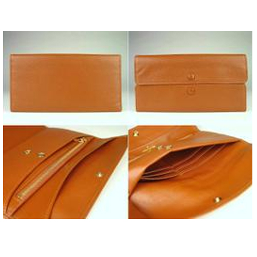 柔らかく感触良い品のあるキャラメル色のヤギ革です。素材の感触、デザイン等が逸品のお財布です。