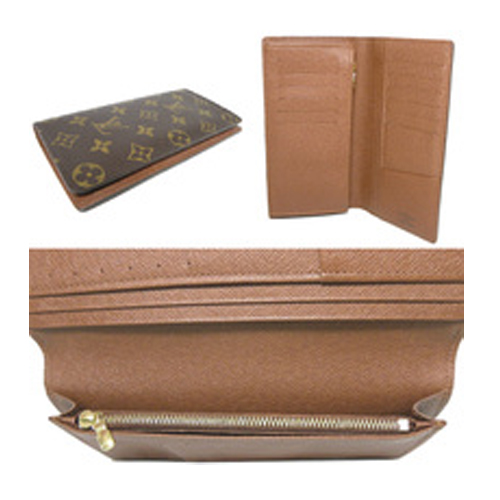 定番のモノグラムラインのファスナー付き財布です。ポケットにもスムーズに収まるスリムなデザイン。収納性に優れ、実用的です。